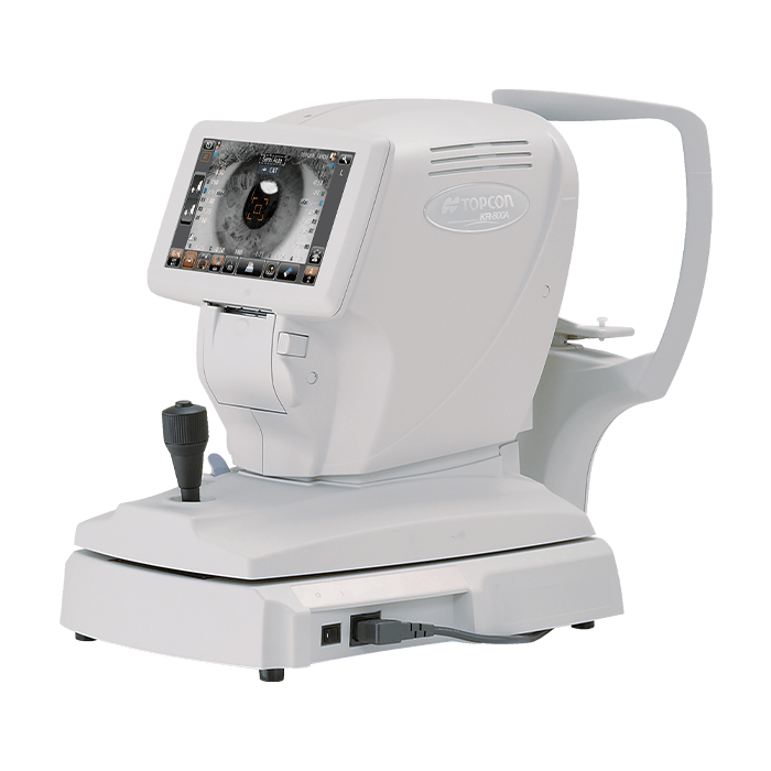 オートレフケラメータという検査機器で眼の度数を測り、近視や乱視の強さに合わせて、ラインナップから最も合う度数のレンズを選びます。