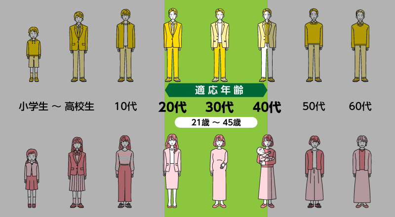 ガイドラインでは、手術の対象は21〜45歳とされています。 20歳前後までは近視が進行しやすく、視力がまだ安定していない場合があります。 一方で、45歳を過ぎると老眼(老視)が始まり、見え方に影響することがあるため、この年代での手術を慎重に判断するよう推奨しています。