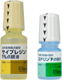 そのため、サイプレジンやミドリンPという点眼薬で一時的にその調節を止めて“真の度数”を測定します。